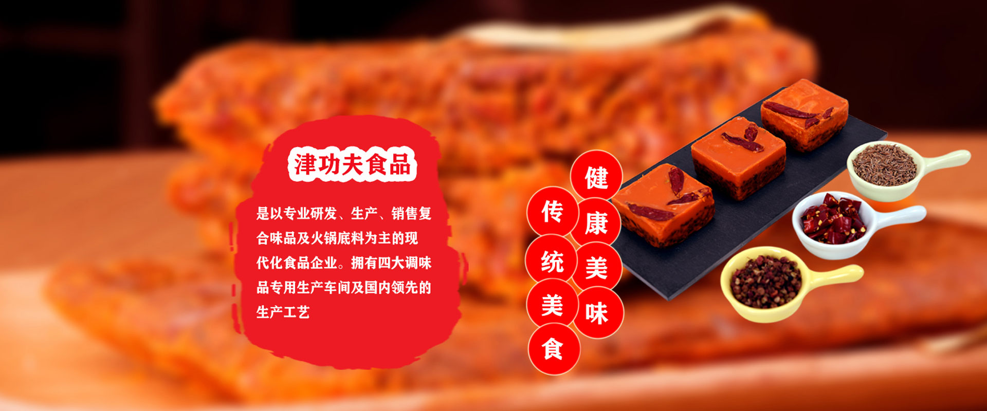 廣東津功夫食品有限公司,位于廣東省肇慶市國家高新區(qū),占地面積約2.5萬平方米,是以專業(yè)研發(fā)、生產(chǎn)、銷售復合調(diào)味品及火鍋底料為主的現(xiàn)代化食品企業(yè)。      "津功夫"為公司注冊商標。公司擁有四大調(diào)味品專用生產(chǎn)車間及國內(nèi)領先的生產(chǎn)工藝;裝備有反應釜、電磁炒鍋、天然氣炒鍋、蒸煮生產(chǎn)線、各型號全自動包裝機、冷封生產(chǎn)線等先進生產(chǎn)設備,年生產(chǎn)能力達2萬噸;配備有微檢、重金屬、金檢、水分、折光等檢測設備。        公司依照國家食品安全法,采用GMP及ISO管理標準,已先后通過ISO-22000質量管理體系認證、HACCP認證。        公司研發(fā)團隊由公司創(chuàng)始人親自帶隊,立足當下,不斷創(chuàng)新,將在調(diào)味品行業(yè)20余年的潛心研究成果變?yōu)楝F(xiàn)實,精品輩出,為客戶創(chuàng)造更多、更好的價值。公司以川味調(diào)味品為根,以客戶需求為本,開發(fā)了復合調(diào)味品及火鍋底料兩大板塊的系列產(chǎn)品。復合調(diào)味品板塊涵蓋:
